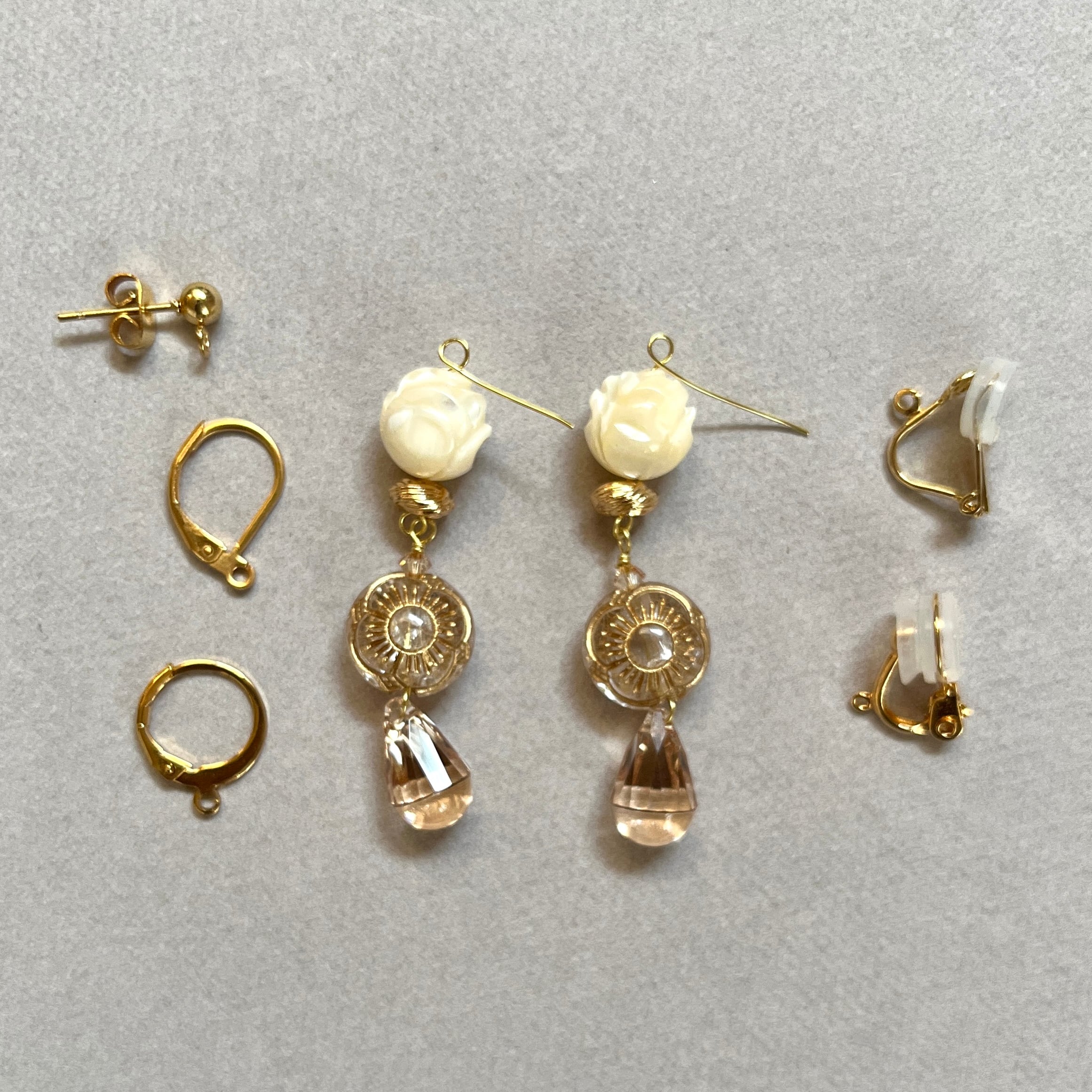イヤリング・ピアス金具はご注文時にお選びいただいたものを