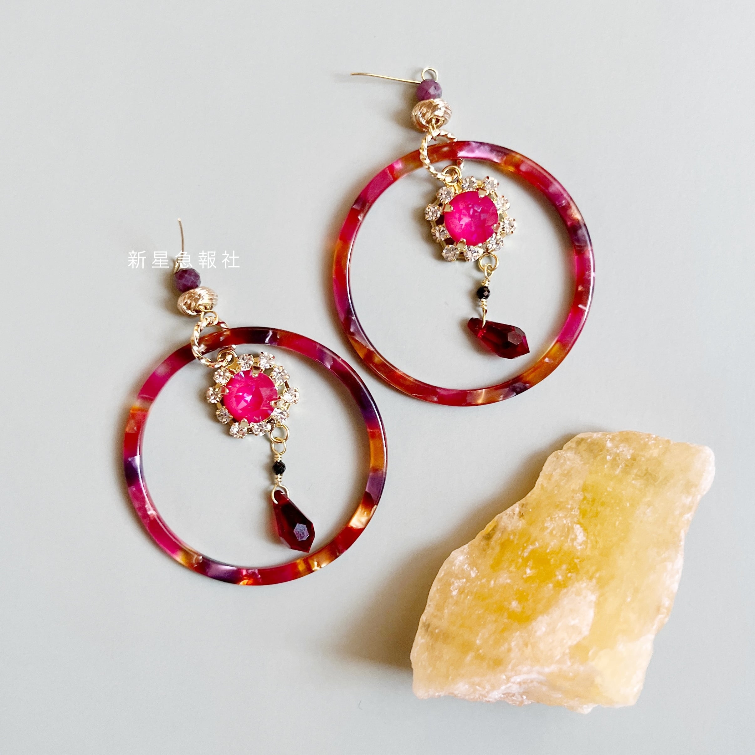 鮮やかな色の輪に、ガラスビーズやルビーなど