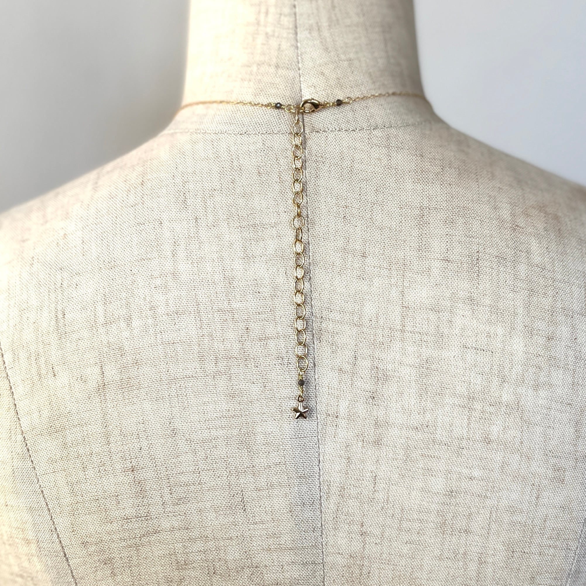 現在はカニカンを右手で持ち、背中のほうで留める形状です。