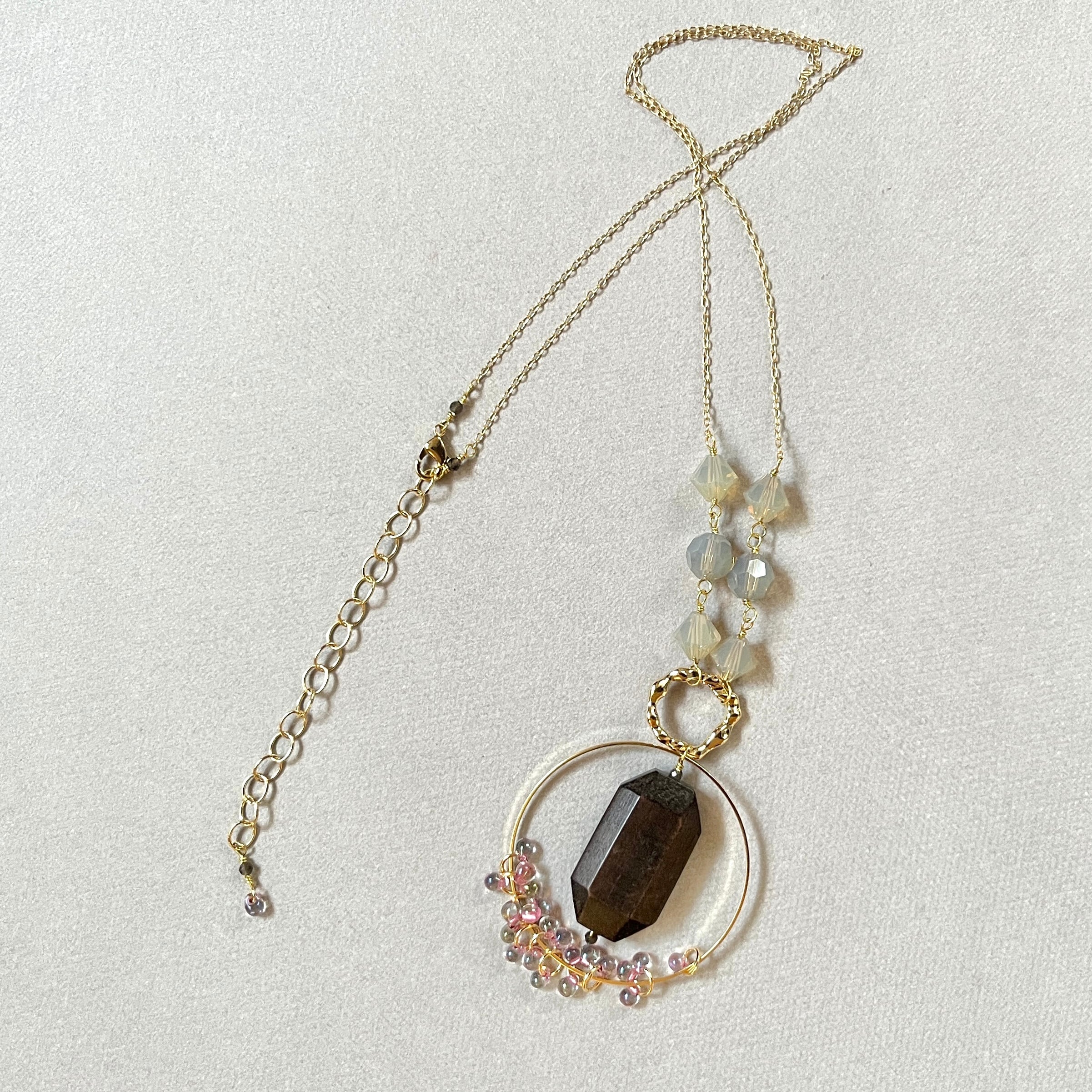半透明の風合いが魅力的なデッドストックのビーズを合わせました。