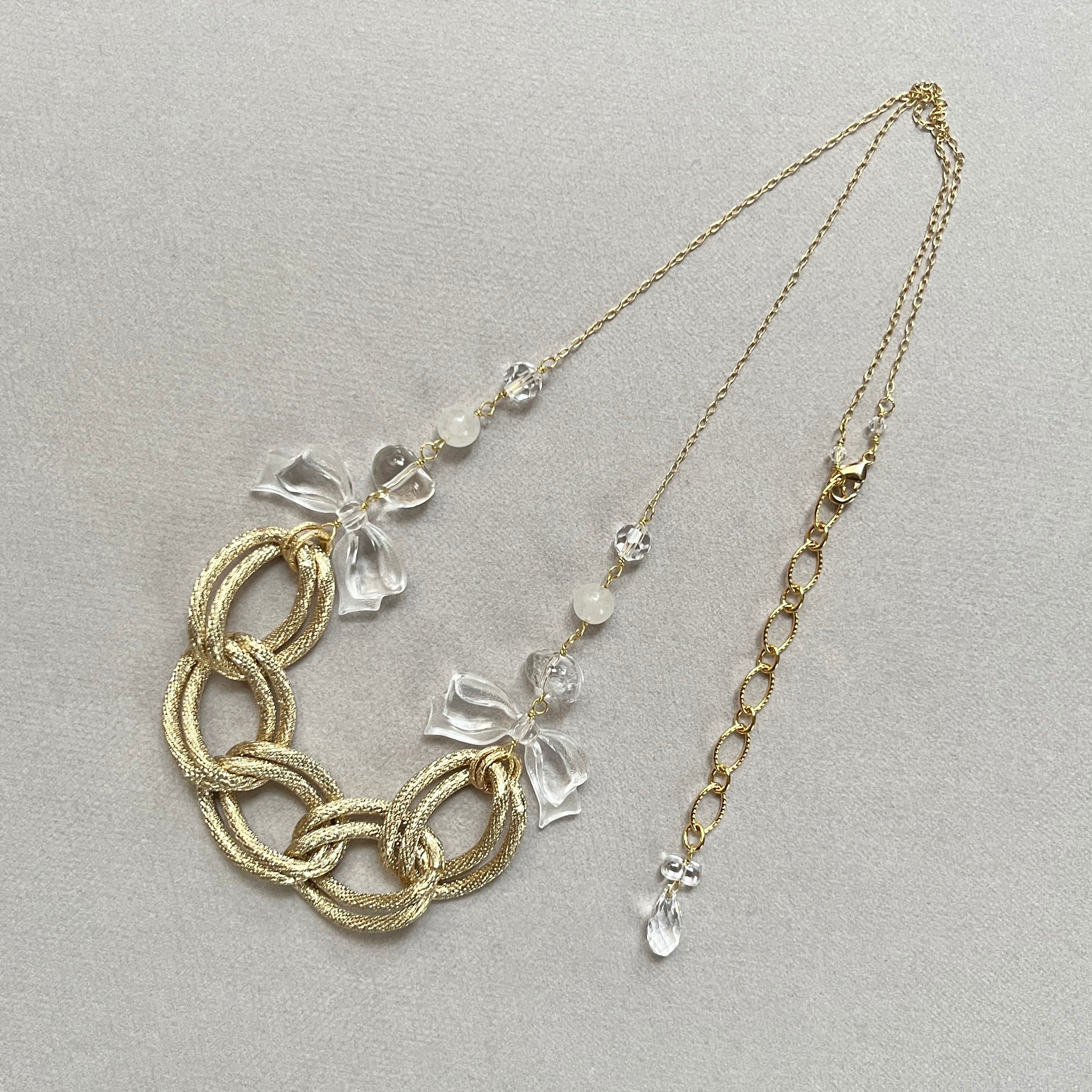 クリアのリボン型のビーズやいびつな水晶