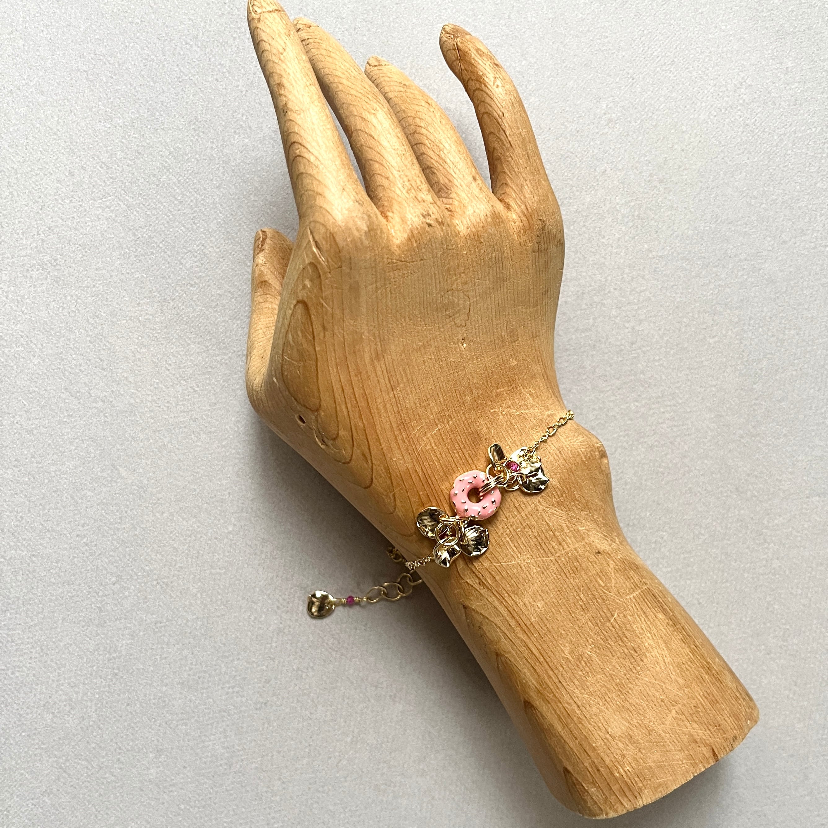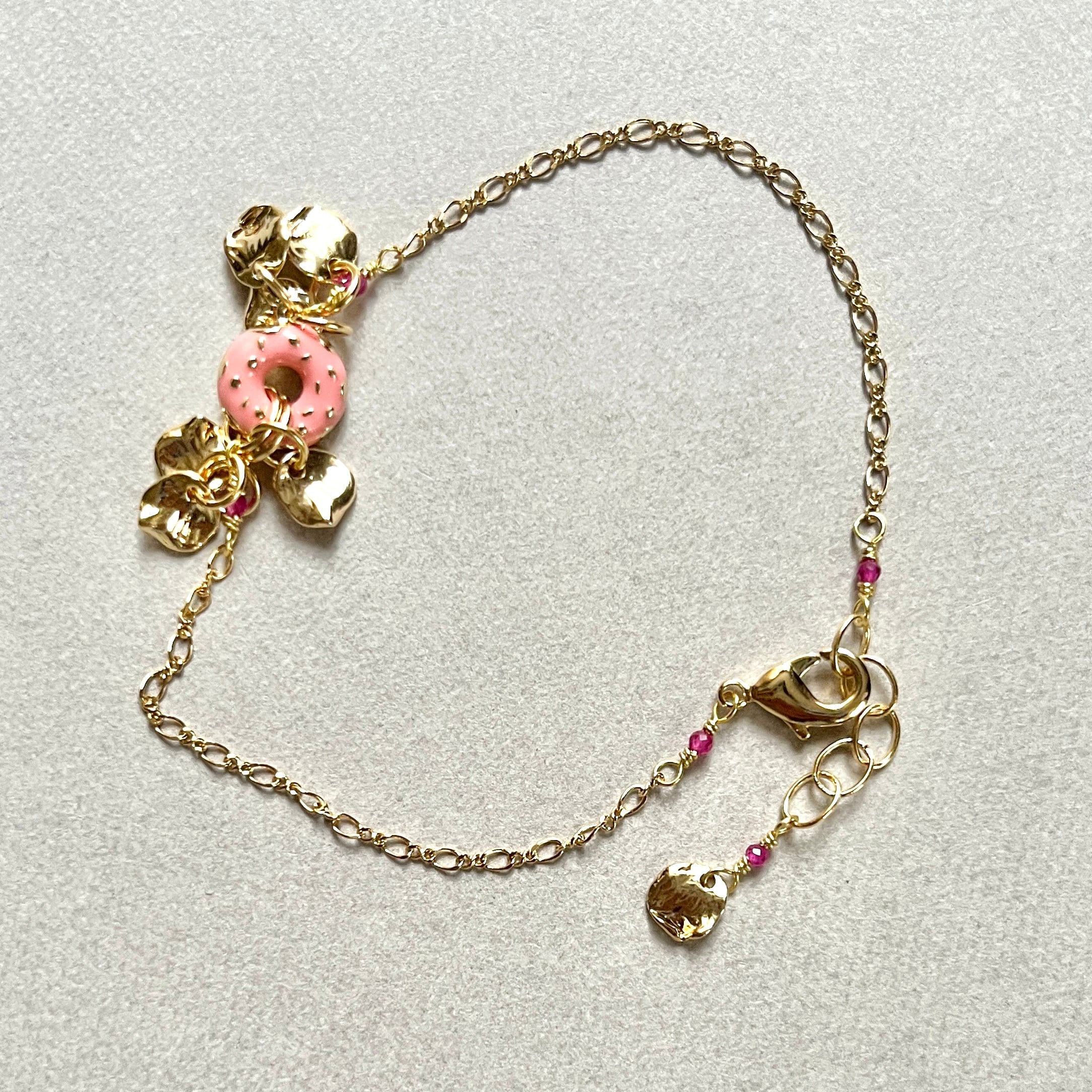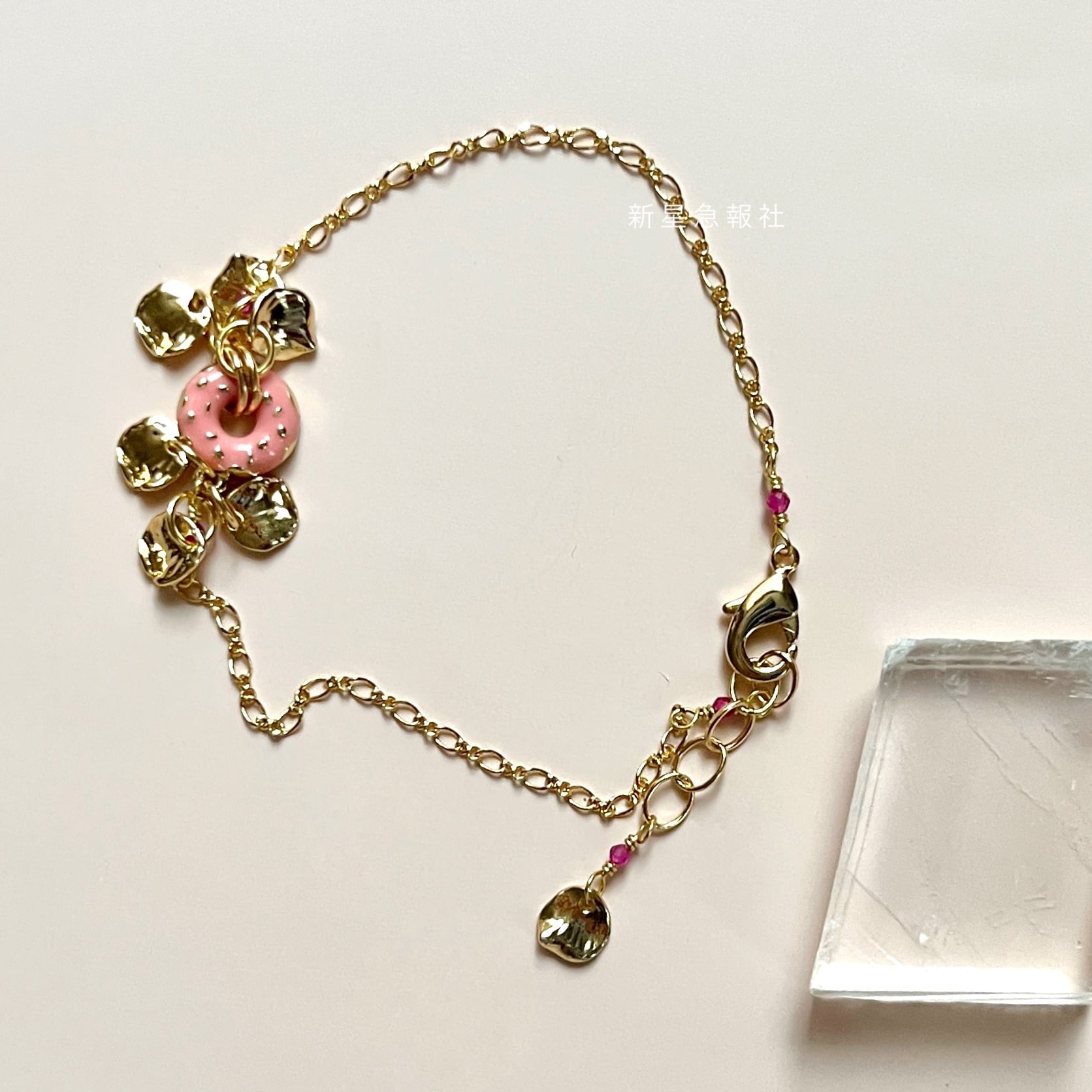 ピンクのドーナツを模した小さなチャームに