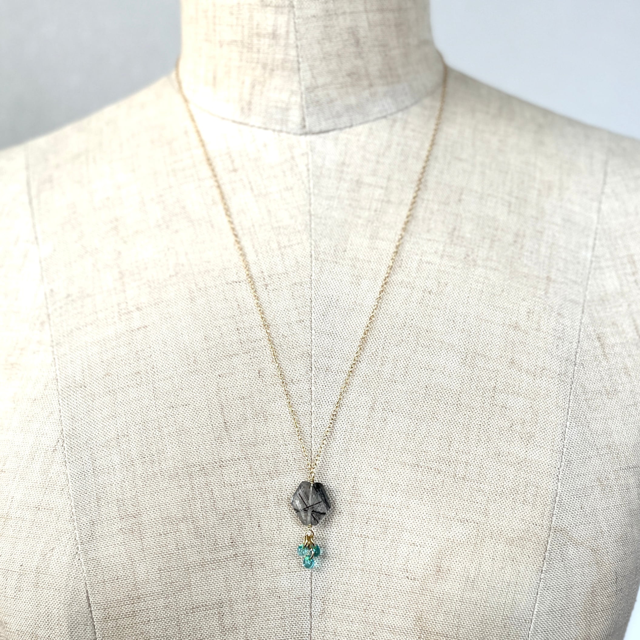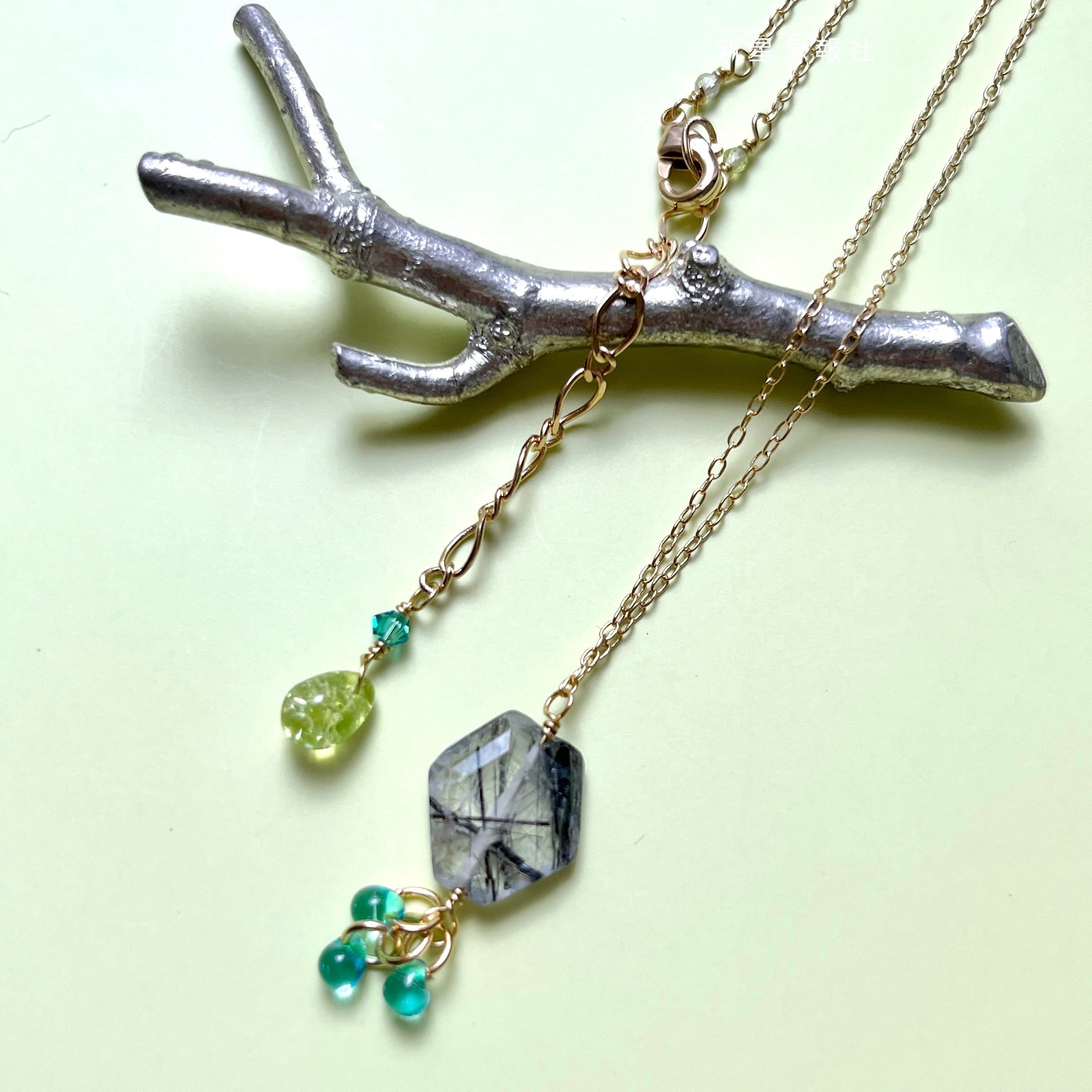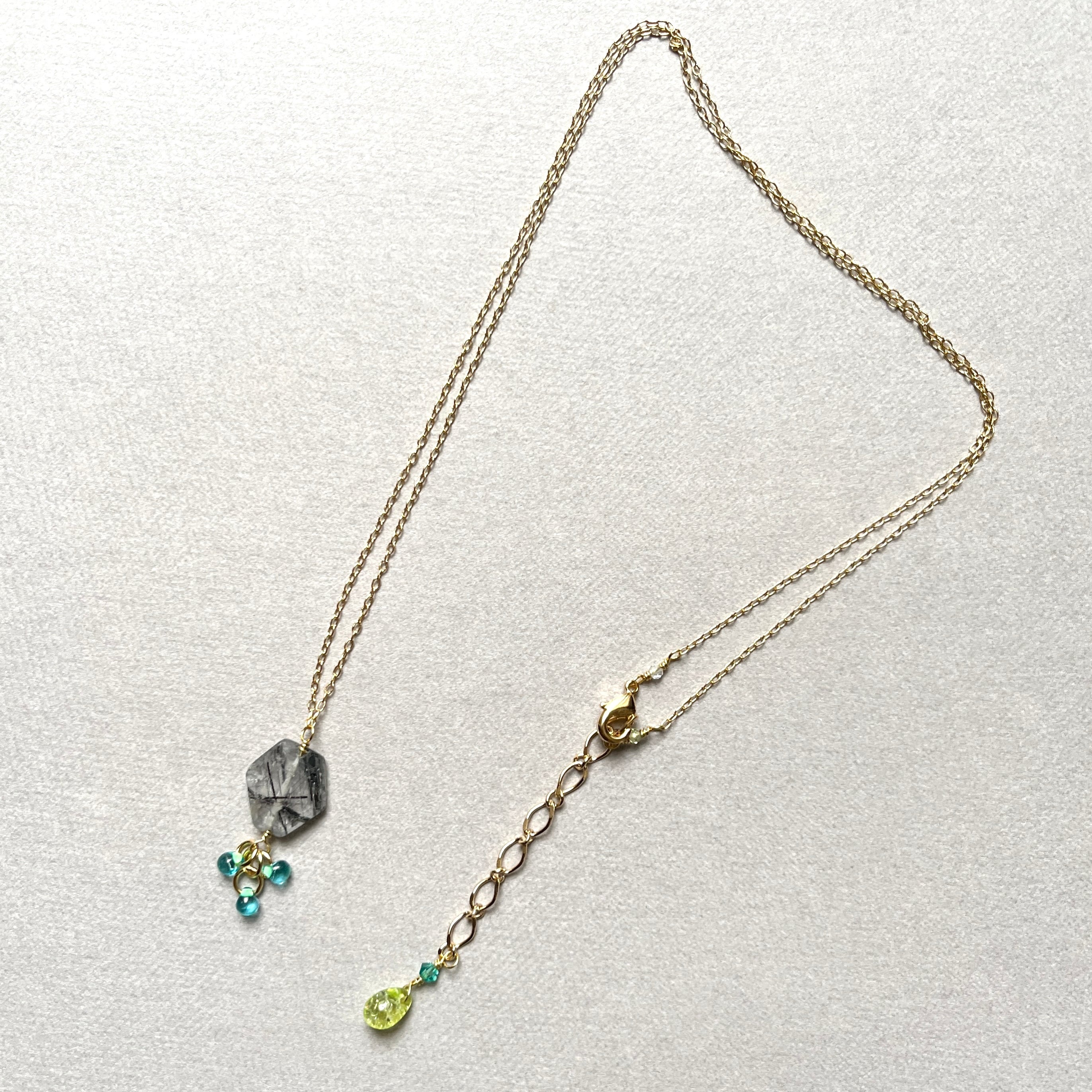 トルマリンインクォーツ、ペリドット、ガラス