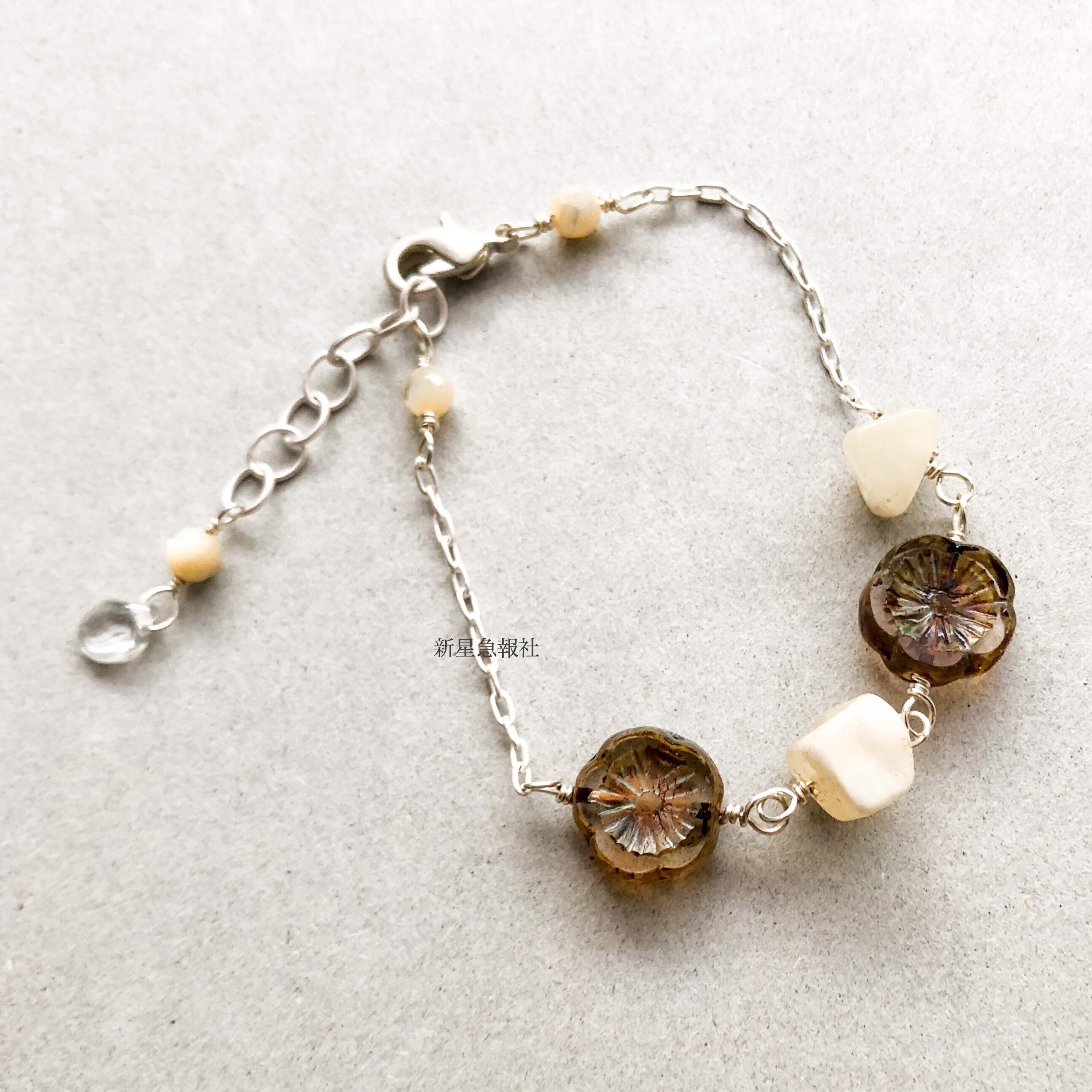 アラゴナイト、貝、ガラス(スワロフスキー社製)