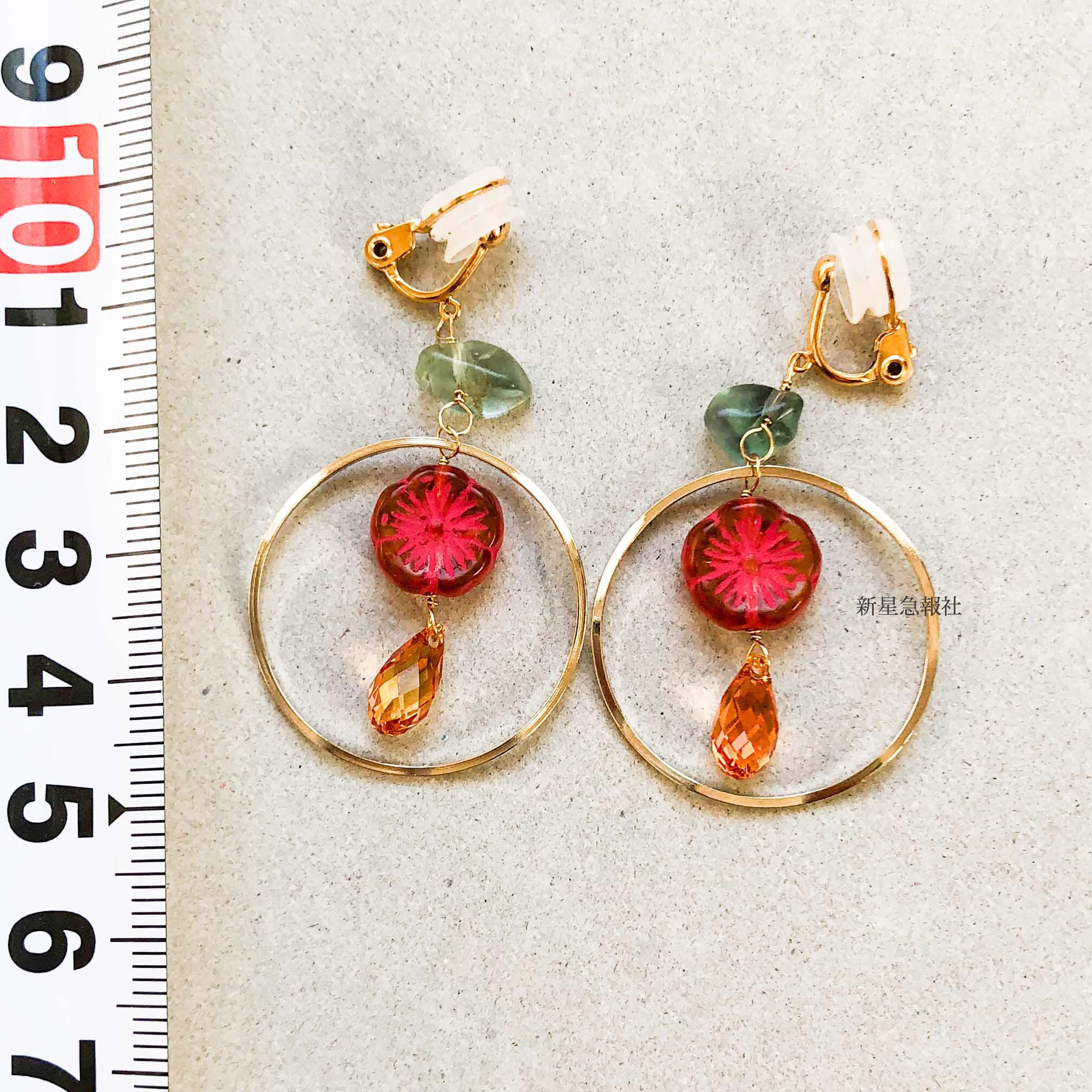 アクセサリーはフローライト、ガラス(一部チェコビーズ、スワロフスキー社製品)を含みます。