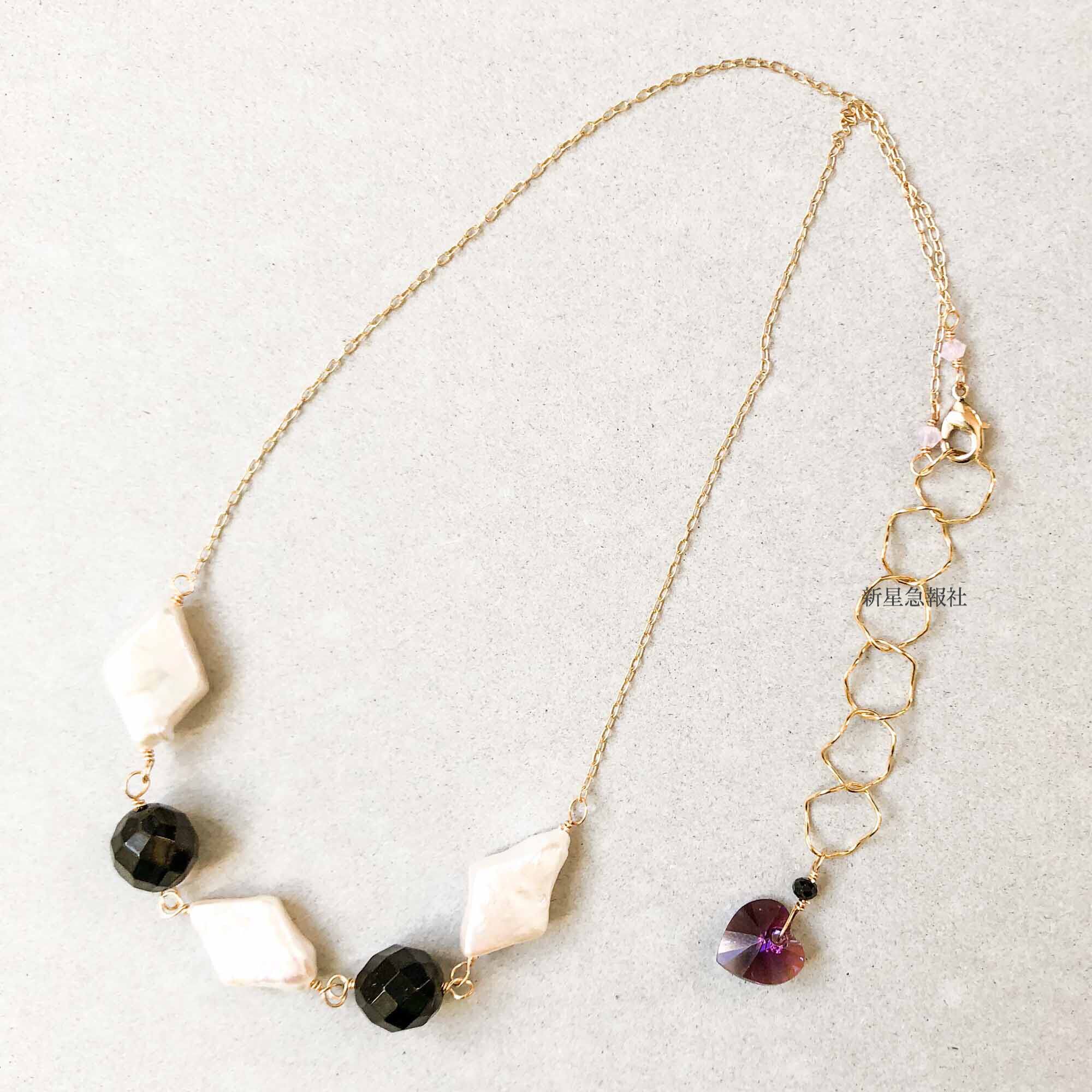 アクセサリーは淡水真珠、ジェット、ガラス(一部スワロフスキー社製品)含みます。