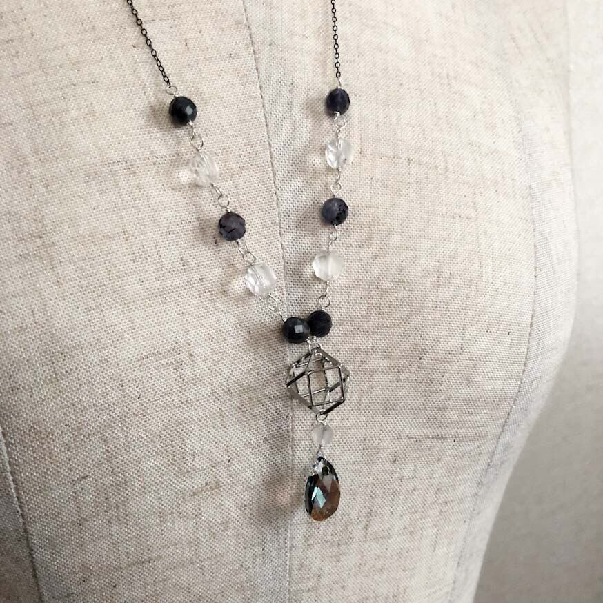 アクセサリーはアイオライト、ガラス(一部スワロフスキー社製品)を含みます。