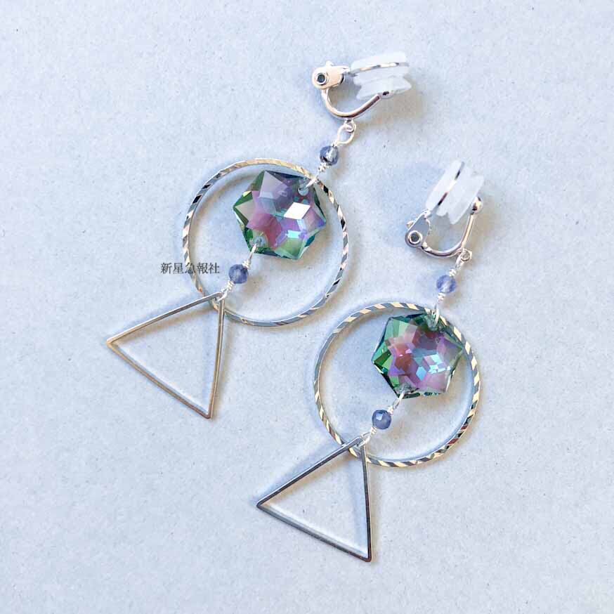アクセサリーはアイオライト、ガラス(スワロフスキー社製)を含みます。