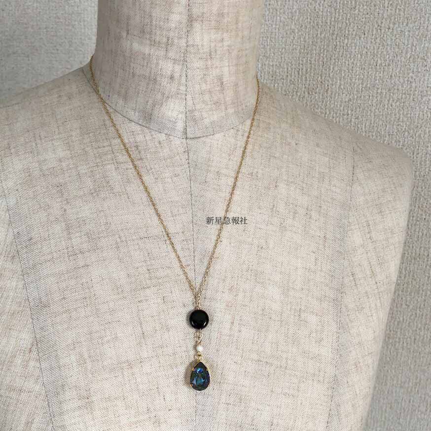 アクセサリーはジェット、骨素材、ガラス(スワロフスキー社製)を