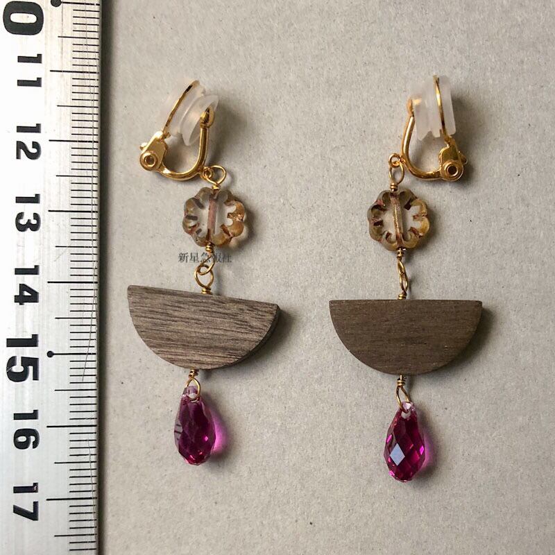 アクセサリーは木素材、ガラス(スワロフスキー社製、チェコビーズ)を含みます。