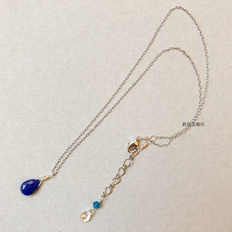 アクセサリーはラピスラズリ、ジルコン、ガラス(一部チェコビーズ、スワロフスキー社製品)を含みます。