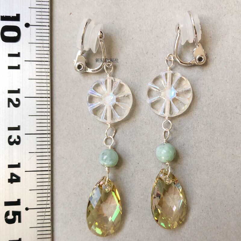 アクセサリーはラリマー、ガラス(チェコビーズ、スワロフスキー社製)を含みます。