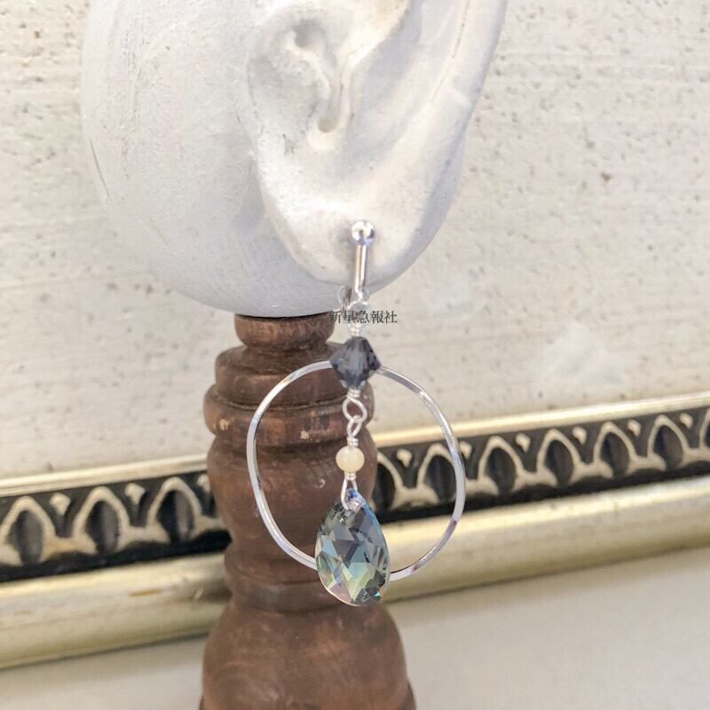 アクセサリーは貝素材、ガラス(スワロフスキー社製)