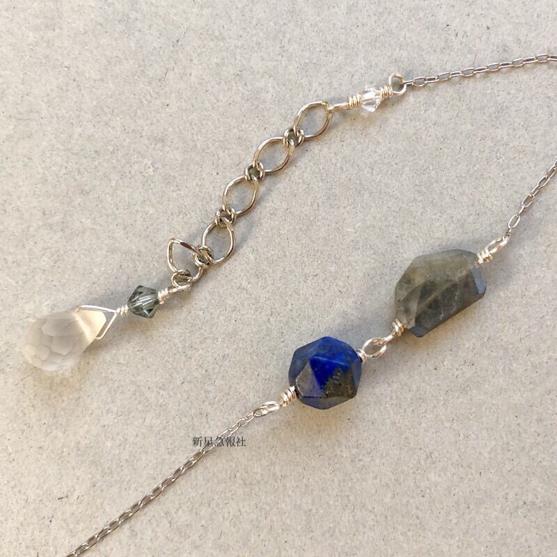 アクセサリーは、ラブラドライト、ラピスラズリ
