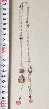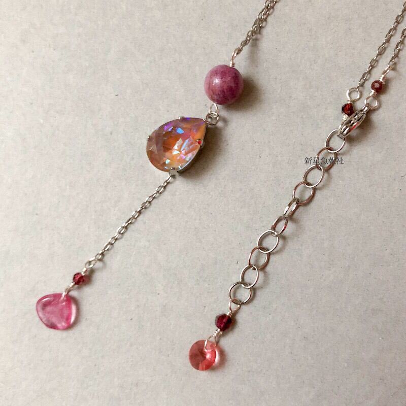 アクセサリーはルビー、ガーネット、ガラス(チェコビーズ、スワロフスキー社製)を
