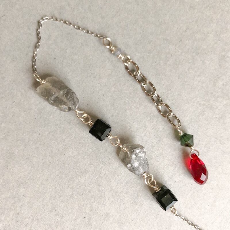 アクセサリーはラブラドライト、ガラス(スワロフスキー社製)を含みます。