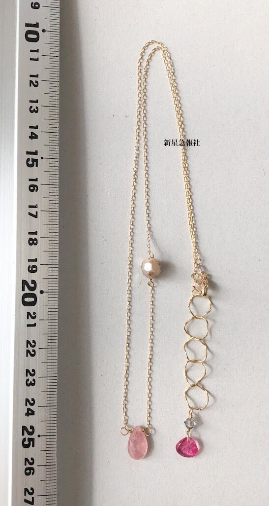 アクセサリーはピンクサファイア、アゲート(ドゥールジータイプ) ガラス(一部チェコビーズ、スワロフスキー社製)を含みます。