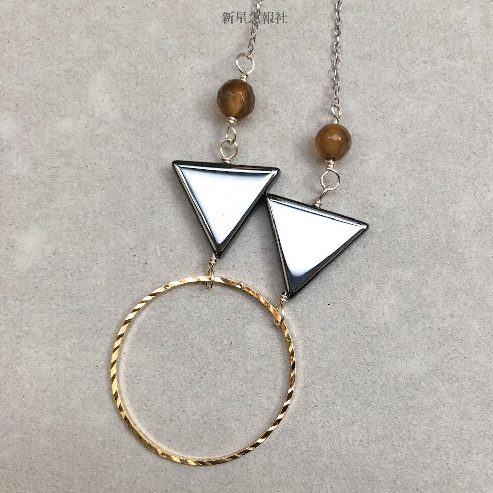 アクセサリーはヘマタイト、アゲート、ガラス(スワロフスキー社製)を含みます。