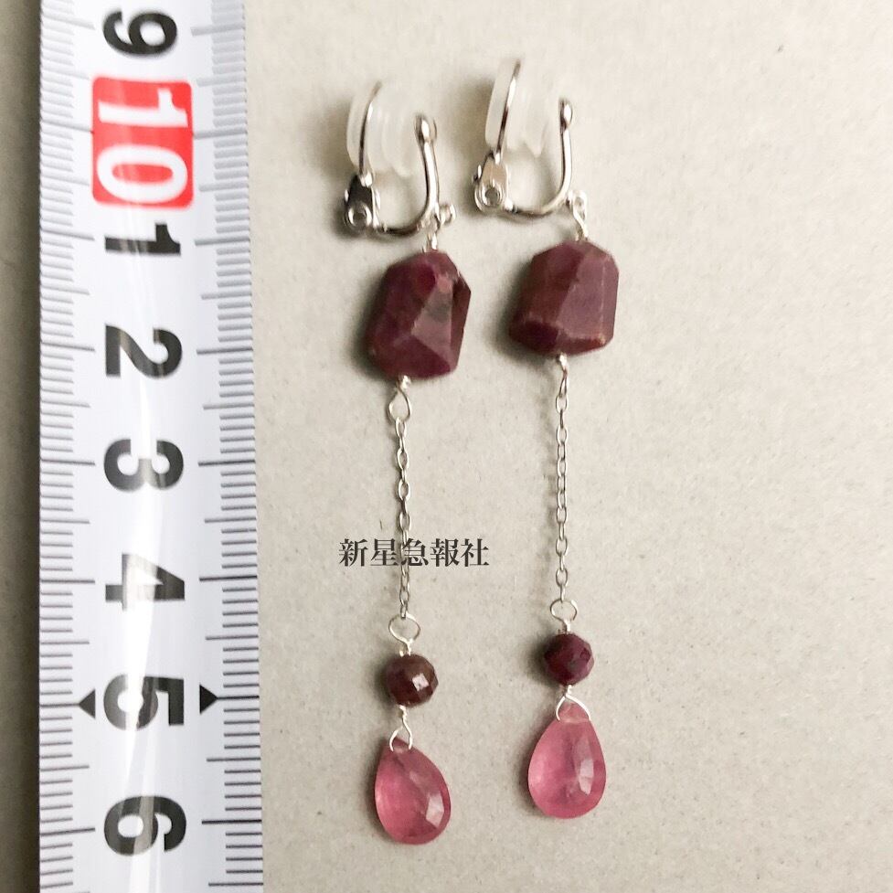 このイヤリングはルビーの不透明なものと