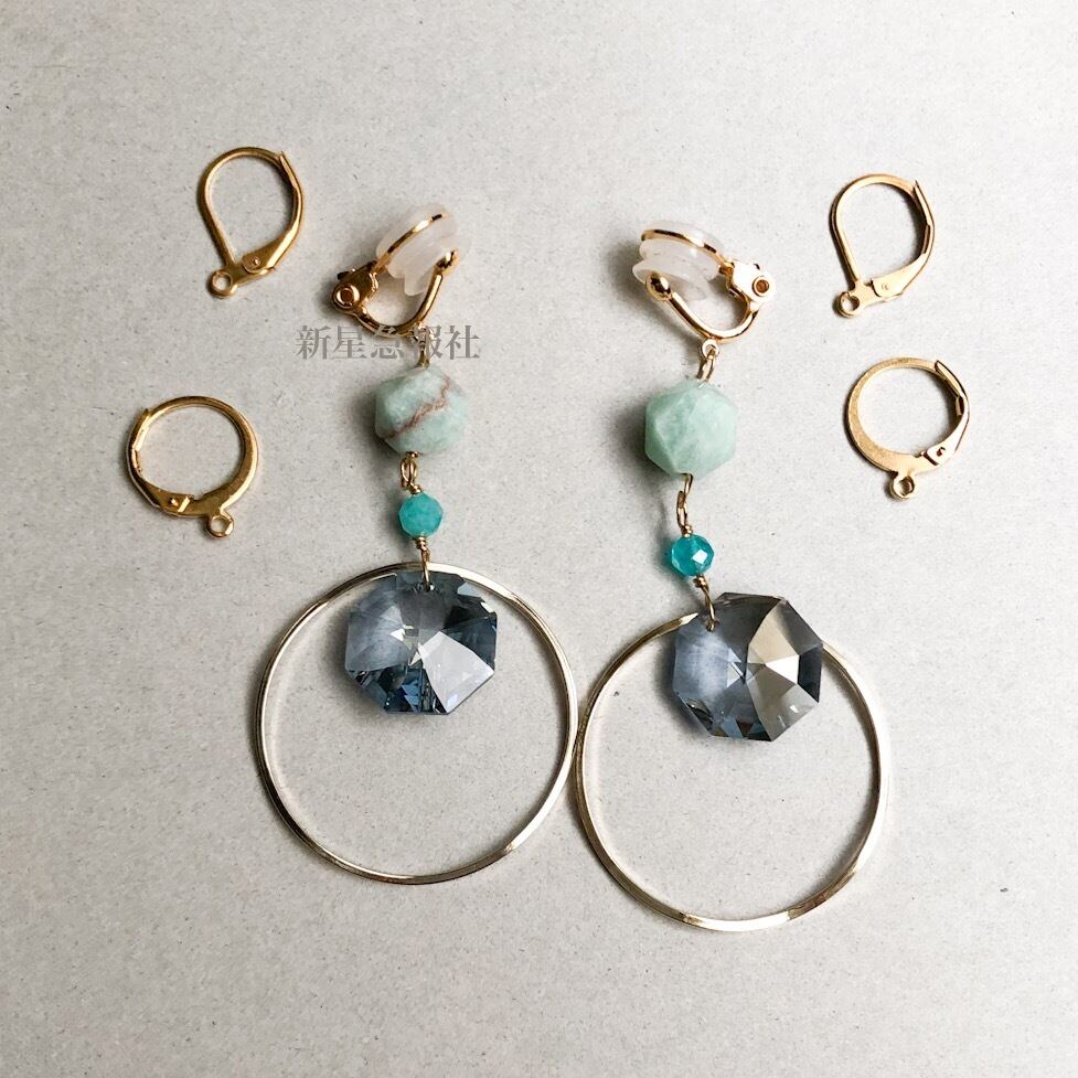 ステンレス メッキ素材のレバーバックタイプのピアスに変更可能