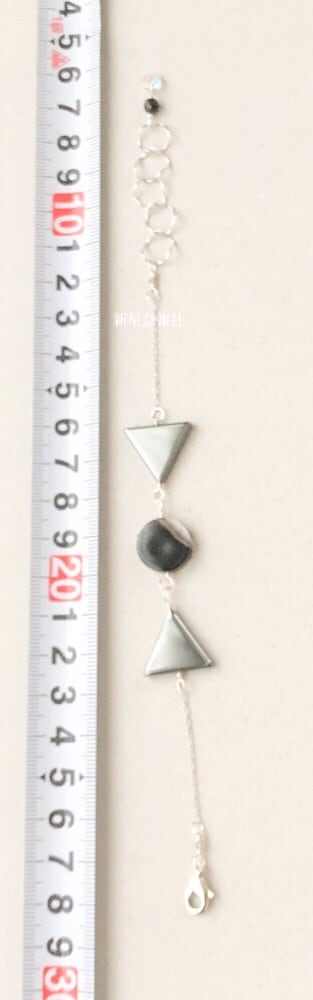 アクセサリーはヘマタイト、オニキス、黒曜石、ガラス(スワロフスキー社製)を含みます。
