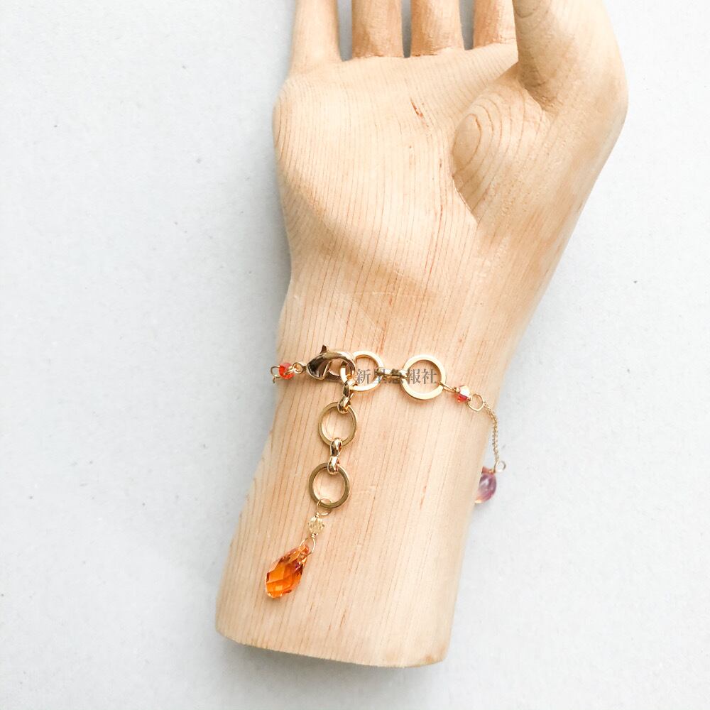 アクセサリーは木素材(黒檀)ガラス(チェコビーズ、スワロフスキー社製)を含みます。