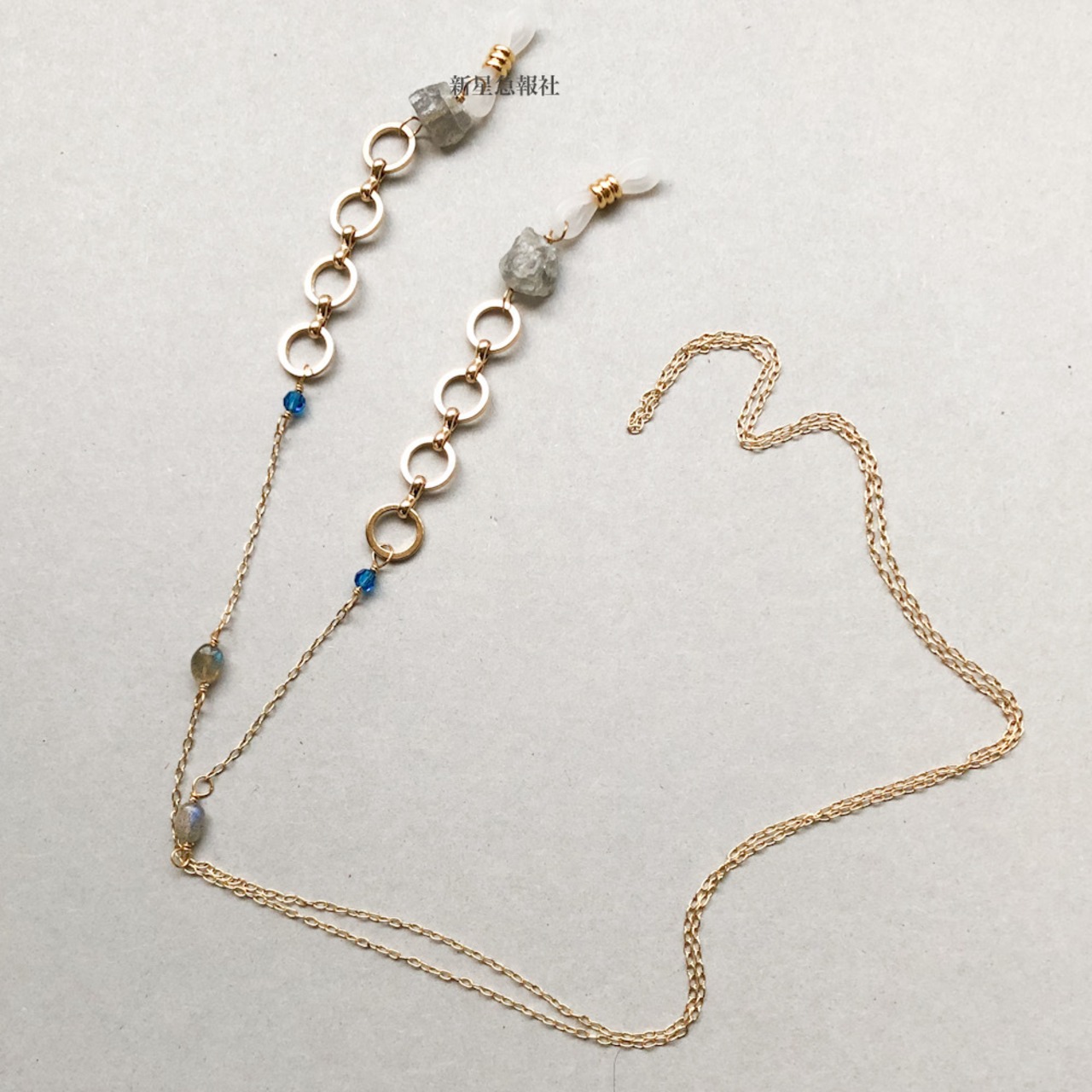 アクセサリーはラブラドライト、ガラス(スワロフスキー社製)を含みます。