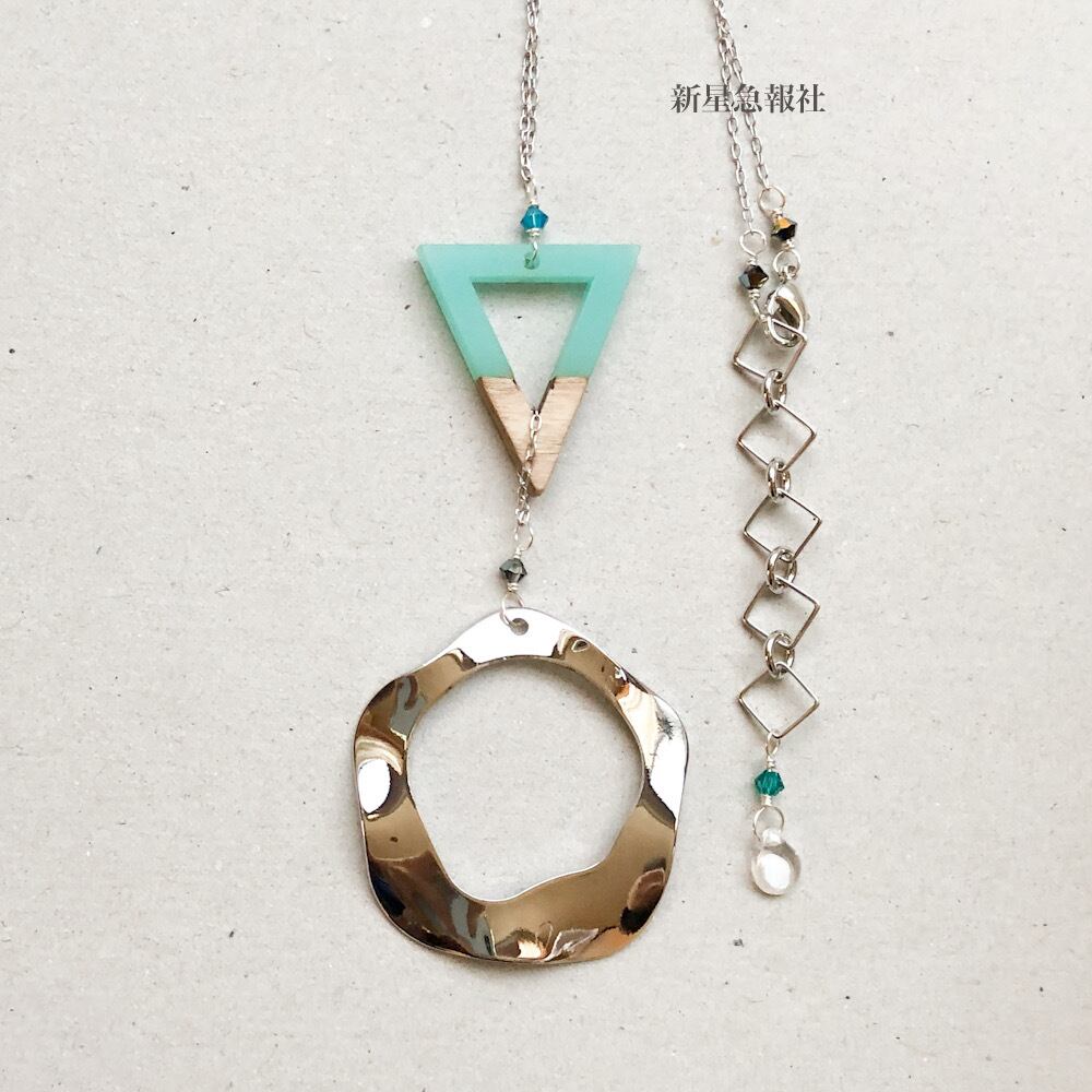 アクセサリーは木・樹脂複合素材、ガラス(スワロフスキー社製、チェコビーズ)を含みます。