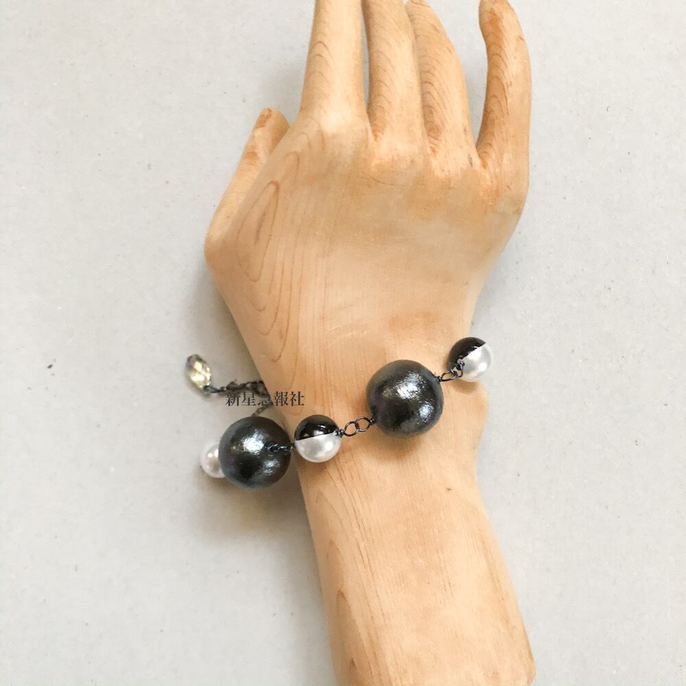 アクセサリーは樹脂素材、コットンパール、ガラス(スワロフスキー社製)を含みます。