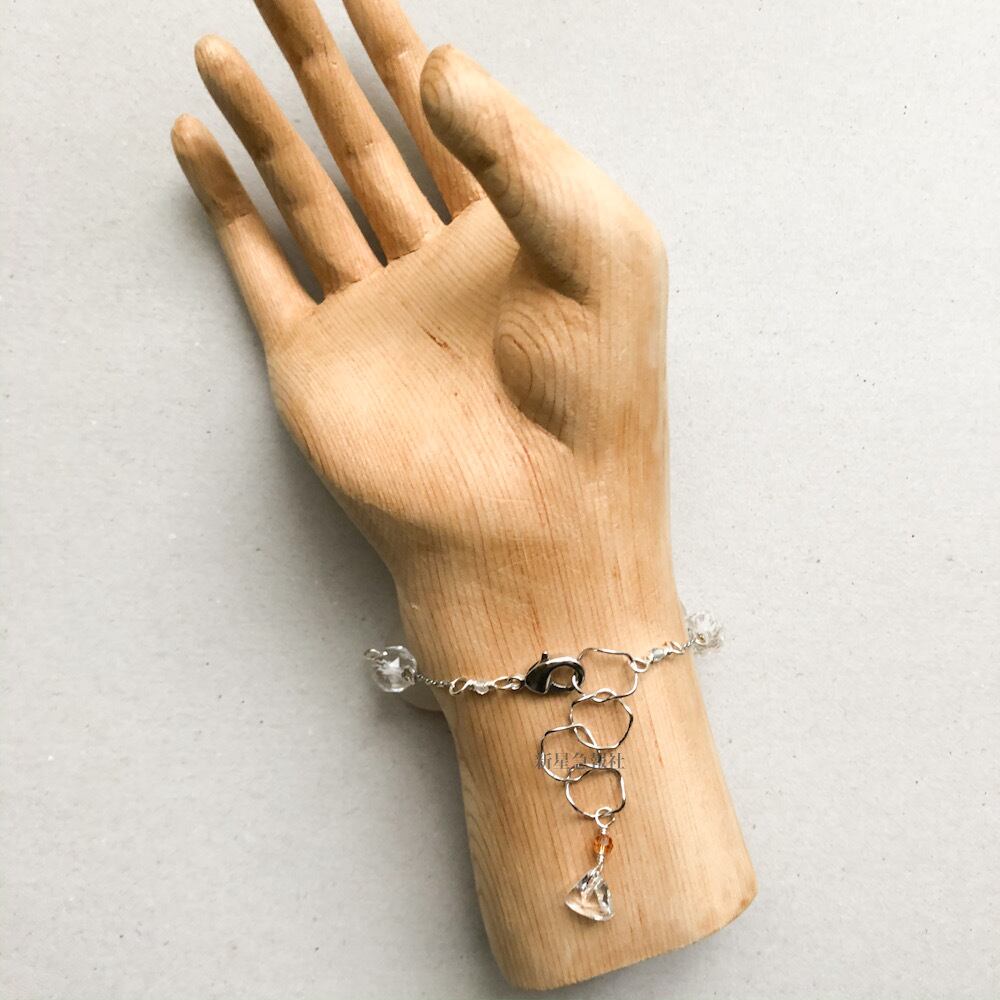 アクセサリーは樹脂素材、水晶、アクアマリン、ガラス(スワロフスキー社製)を含みます。