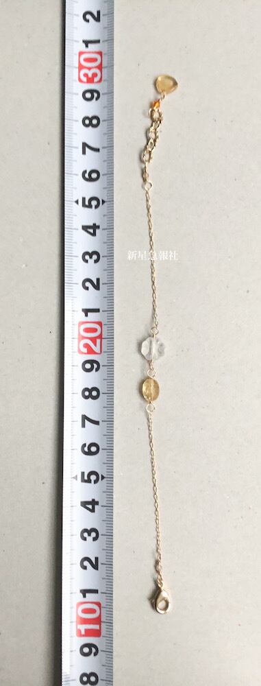 アクセサリーはシトリン、ジルコン、ガラス(チェコビーズ、スワロフスキー社製)を含みます。