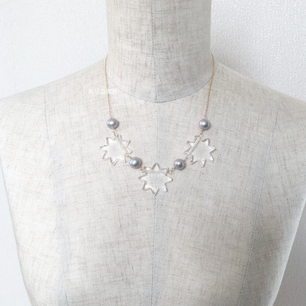 アクセサリーは樹脂素材、淡水真珠、ジルコンを含みます。