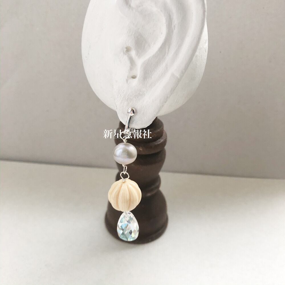 アクセサリーは淡水真珠、樹脂素材(ラクト)ガラス(スワロフスキー社製)を含みます