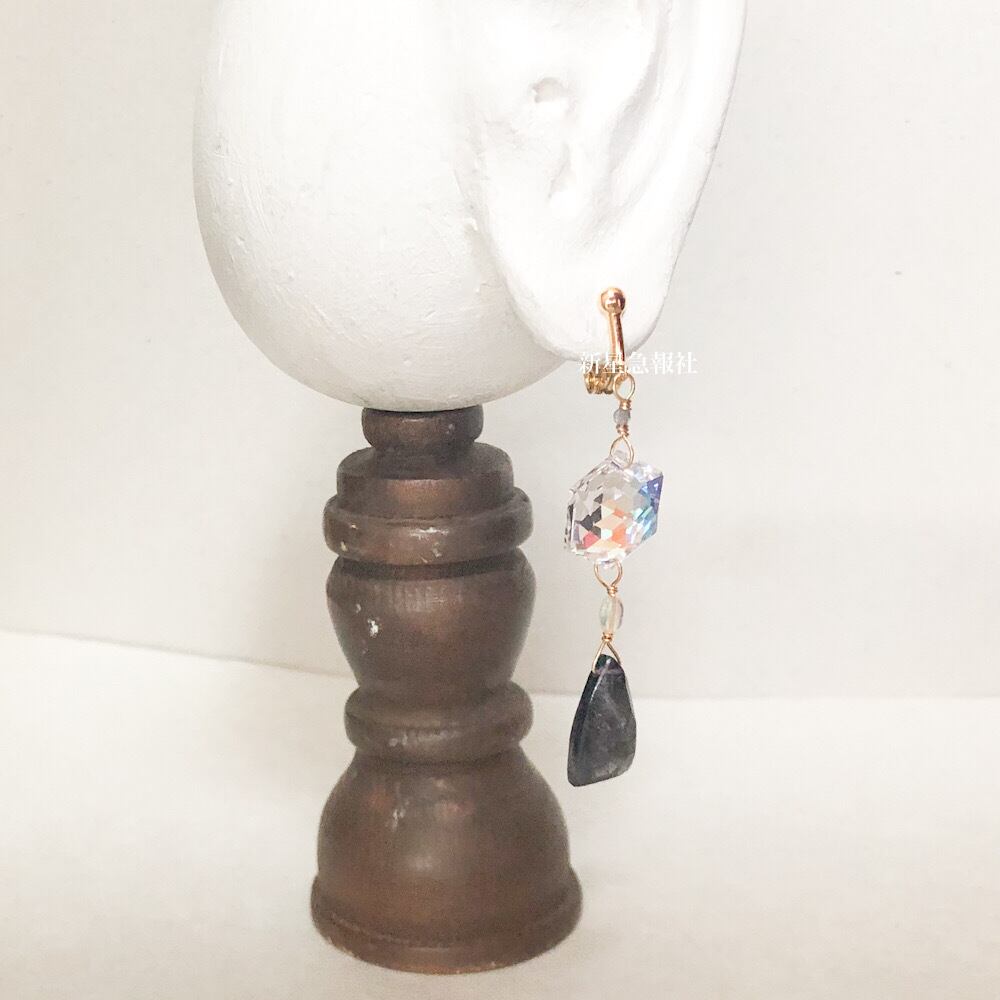 アクセサリーはアイオライト、オパール、ガラス(スワロフスキー社製)を含みます。