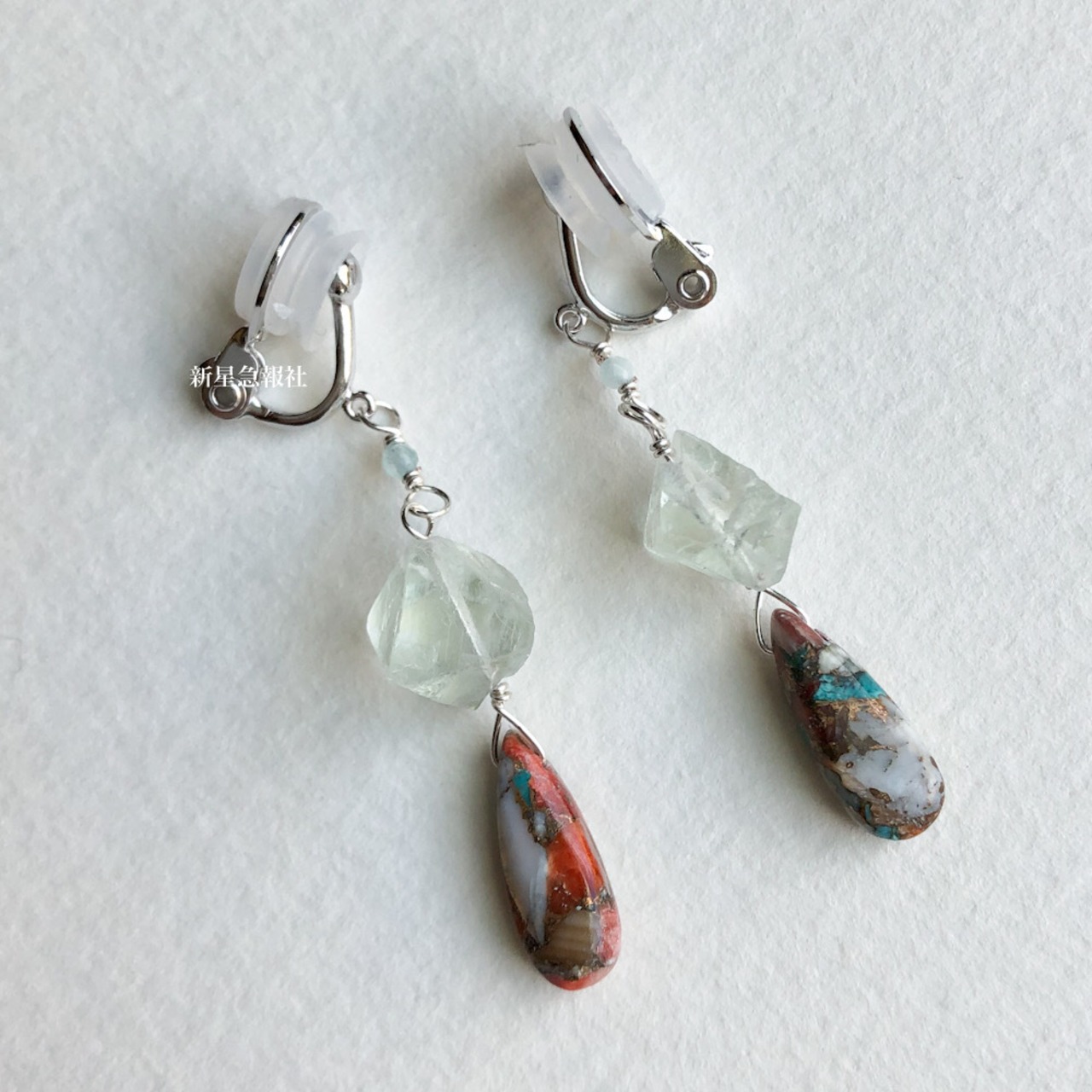 アクセサリーはオイスターカッパーターコイズ、