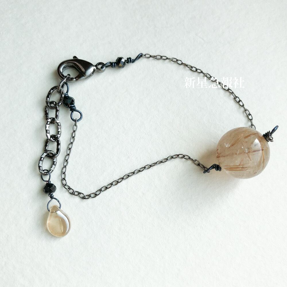 アクセサリーはルチルクオーツ、ブラックスピネル、ガラス(スワロフスキー社製)