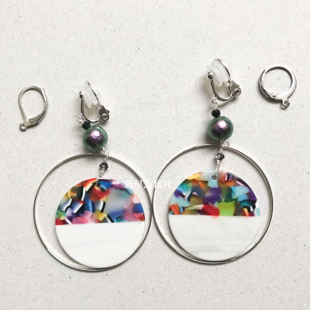 ステンレス メッキ素材のレバーバックタイプのピアスに変更可能