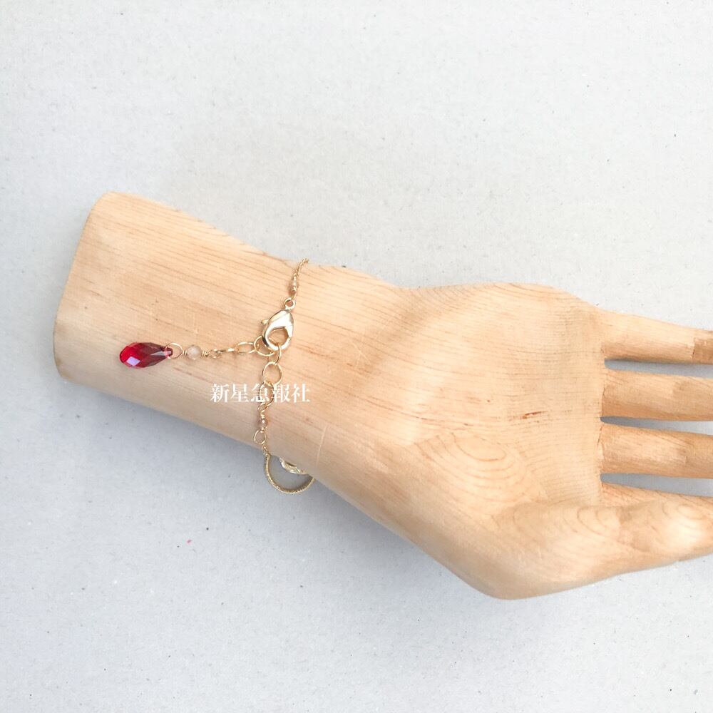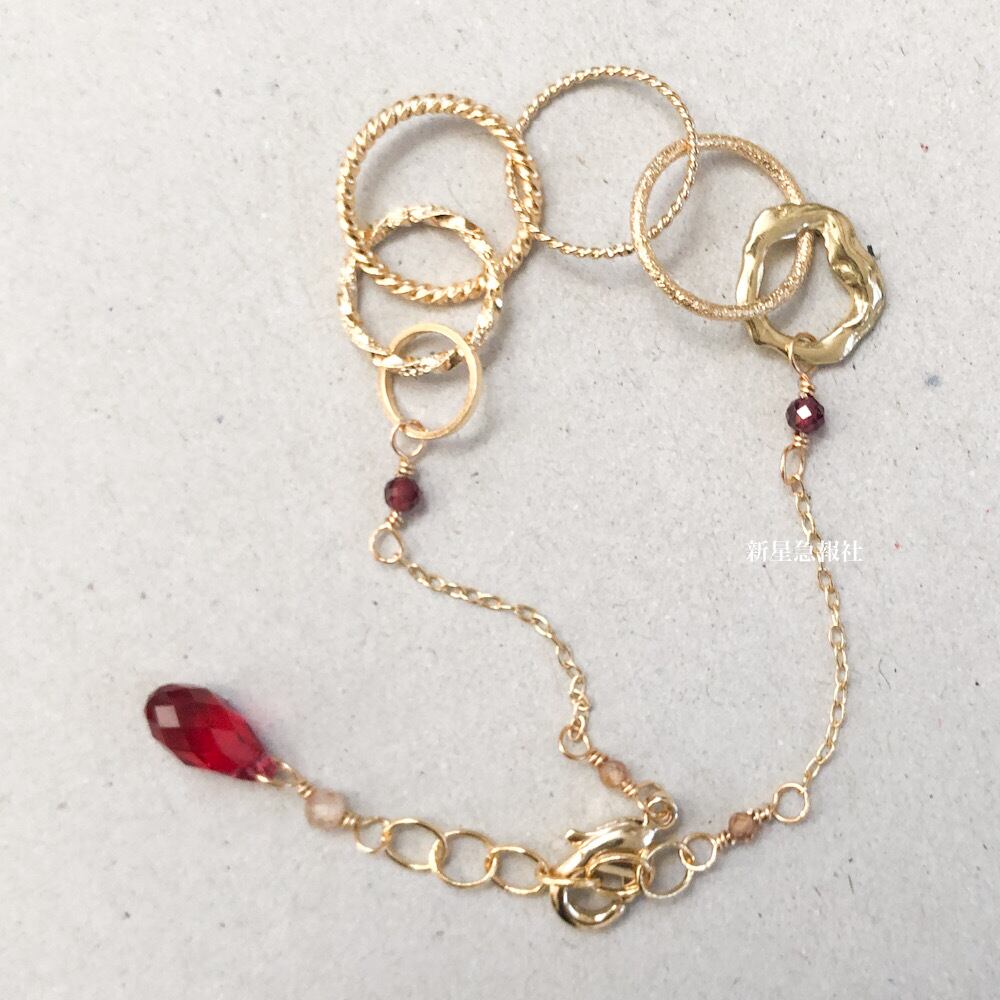 アクセサリーはガーネット、ジルコン、ガラス(スワロフスキー社製)、真鍮を含みます。