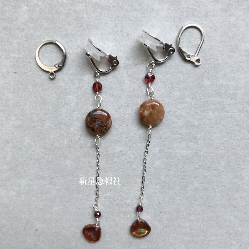 ステンレス メッキ素材のレバーバックタイプのピアスに変更可能