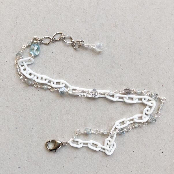 アクセサリーは樹脂素材、アクアマリン、ブルージルコン、