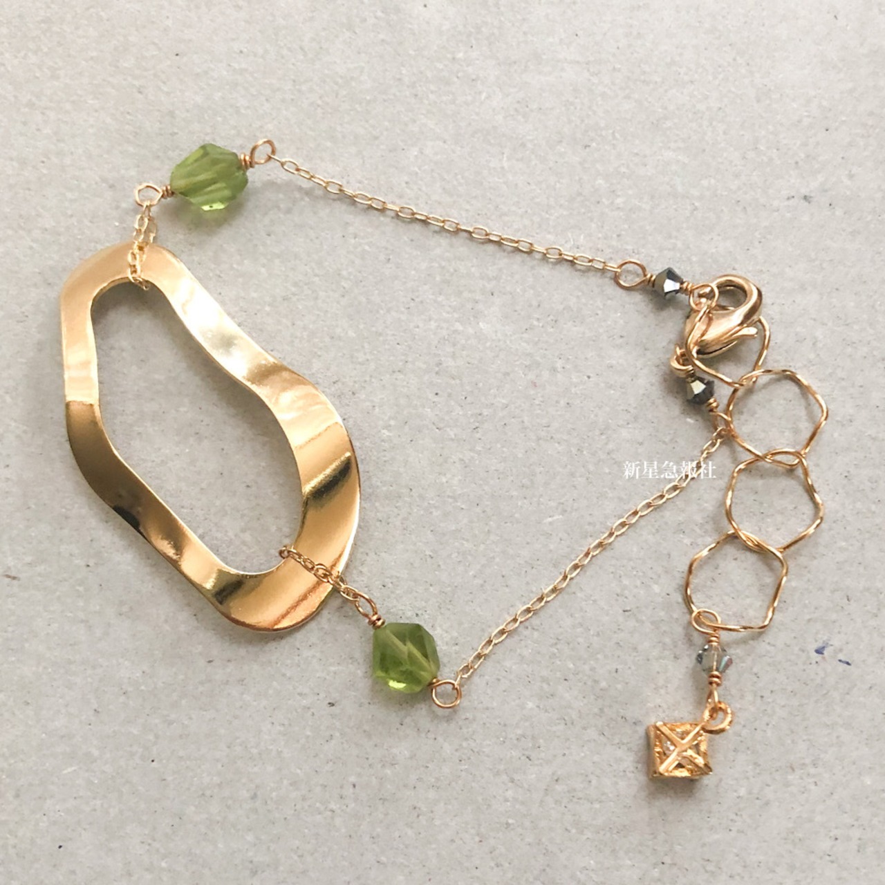 アクセサリーはペリドット、ガラス(スワロフスキー社製)キュービックジルコニアを含みます。