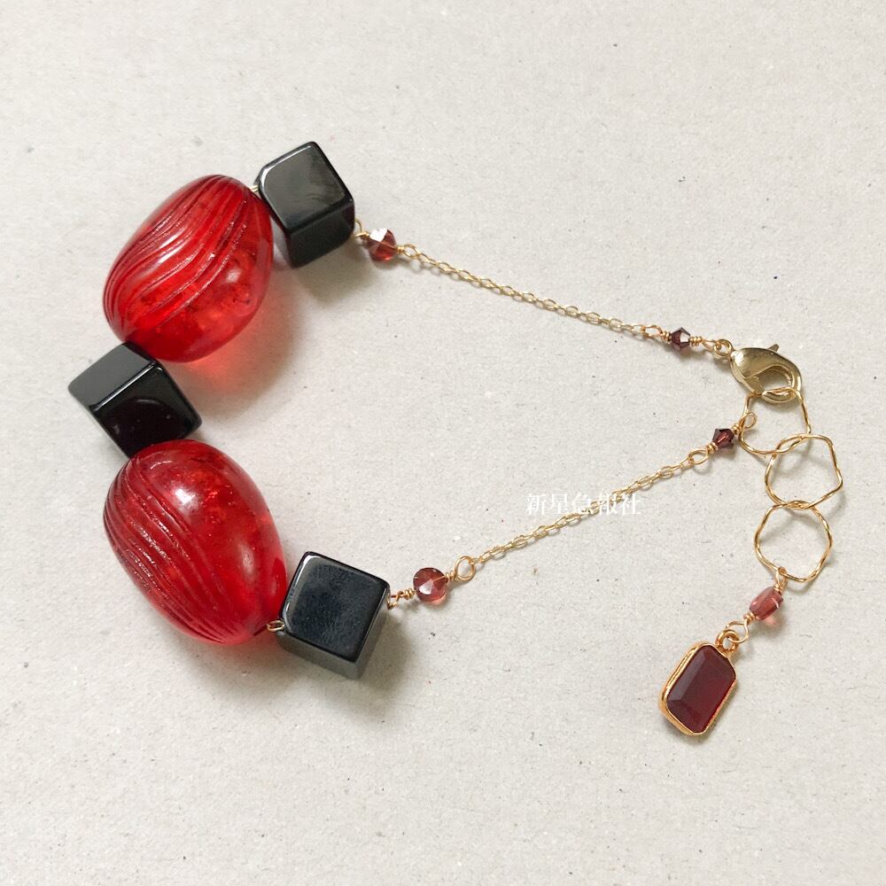 樹脂素材、オニキス、ガーネット、ガラス(一部スワロフスキー社製)