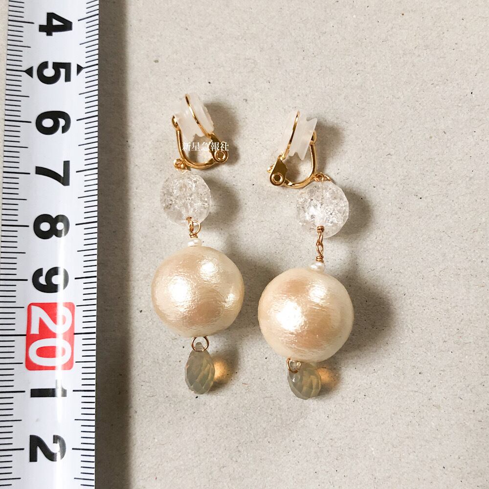 コットンパール、ガラス(チェコビーズ、スワロフスキー社製)、淡水真珠