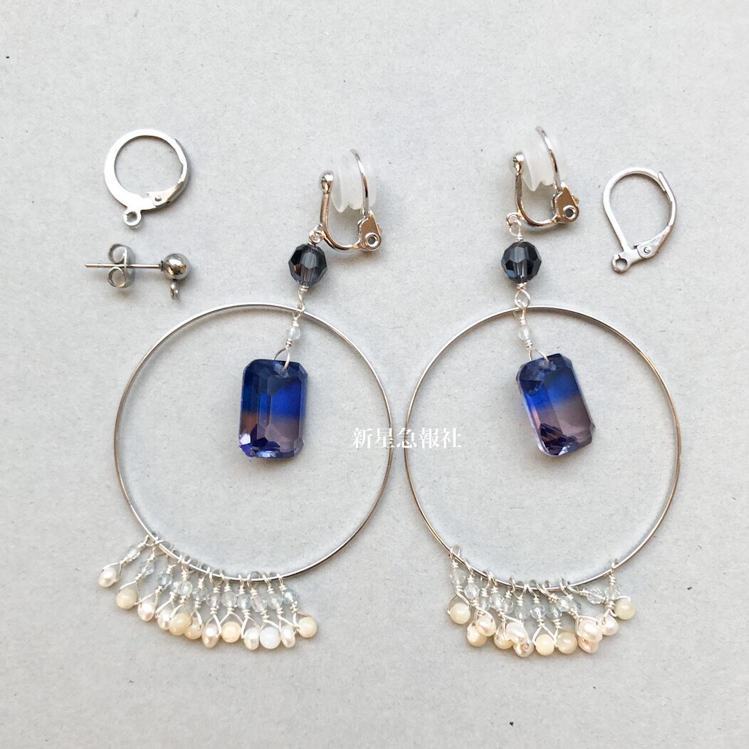 ガラス(一部スワロフスキー社製)、淡水真珠、貝素材、アクアマリン