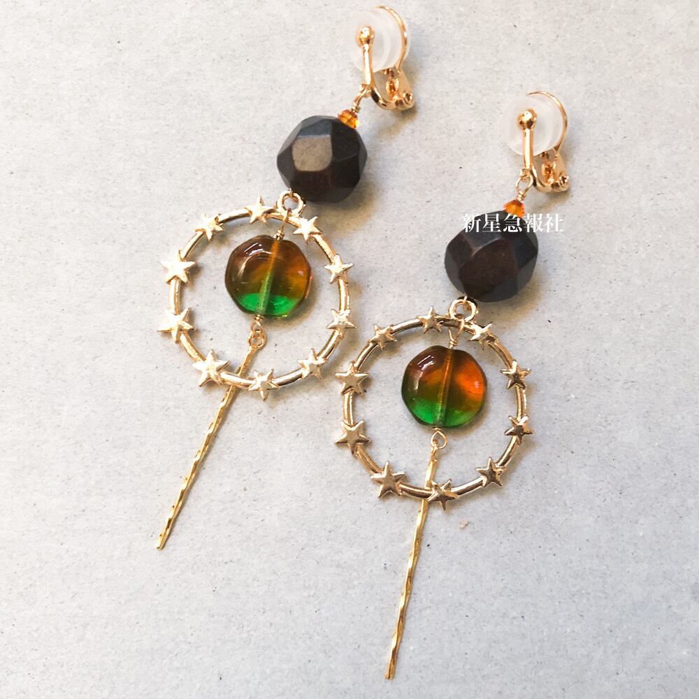 木素材、ガラス(チェコビーズ、スワロフスキー社製)