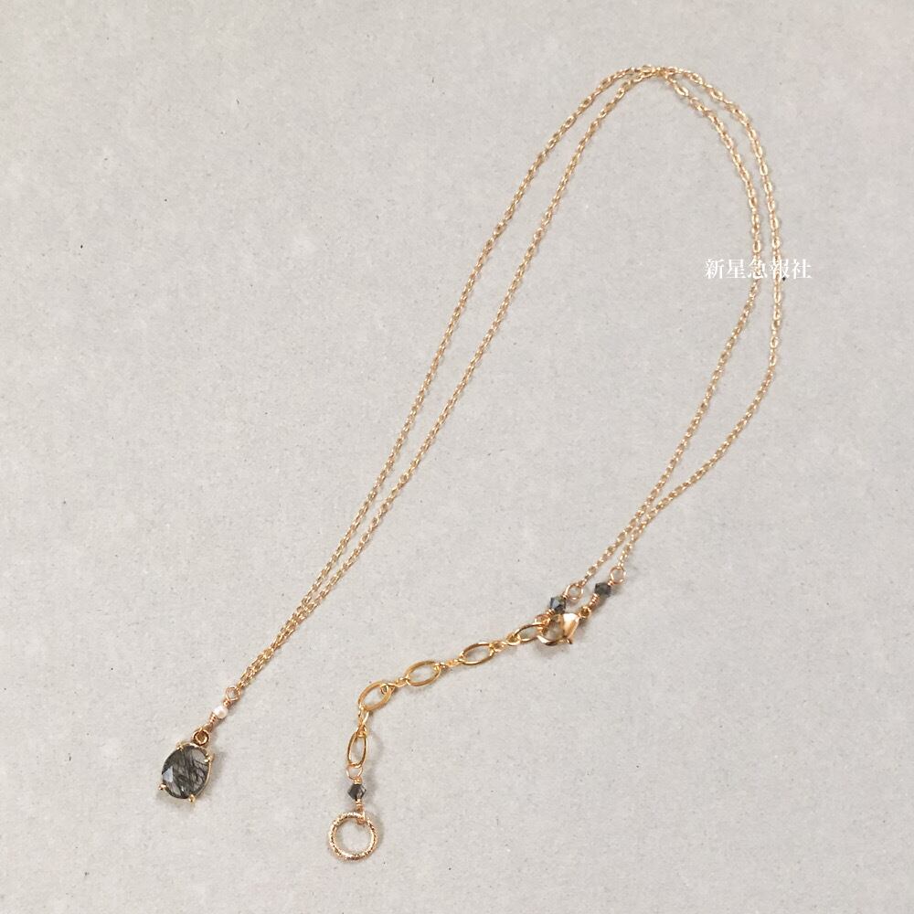 トルマリンインクォーツ、淡水真珠、ガラス(スワロフスキー社製)