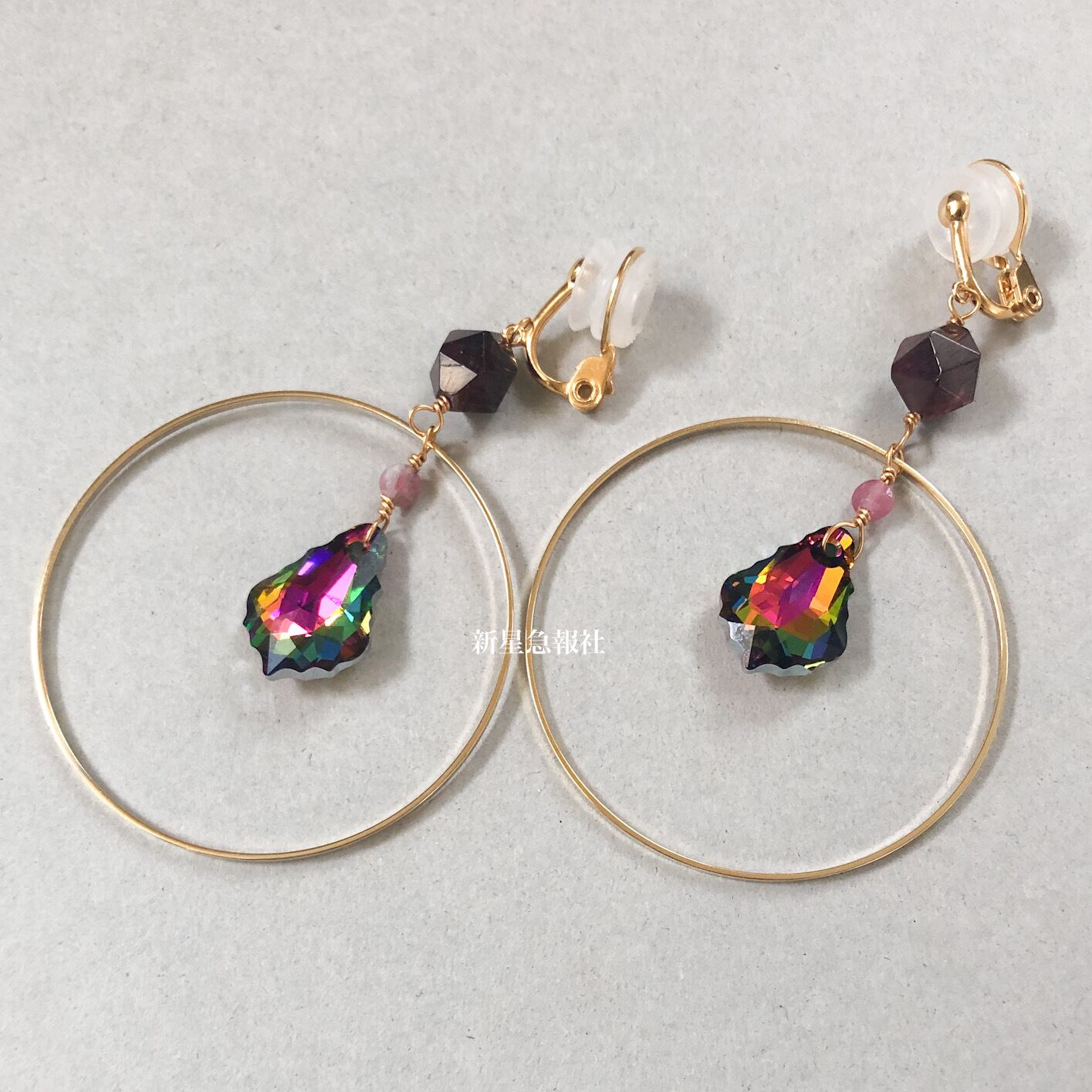 ガーネット、トルマリン、ガラス(スワロフスキー社製)