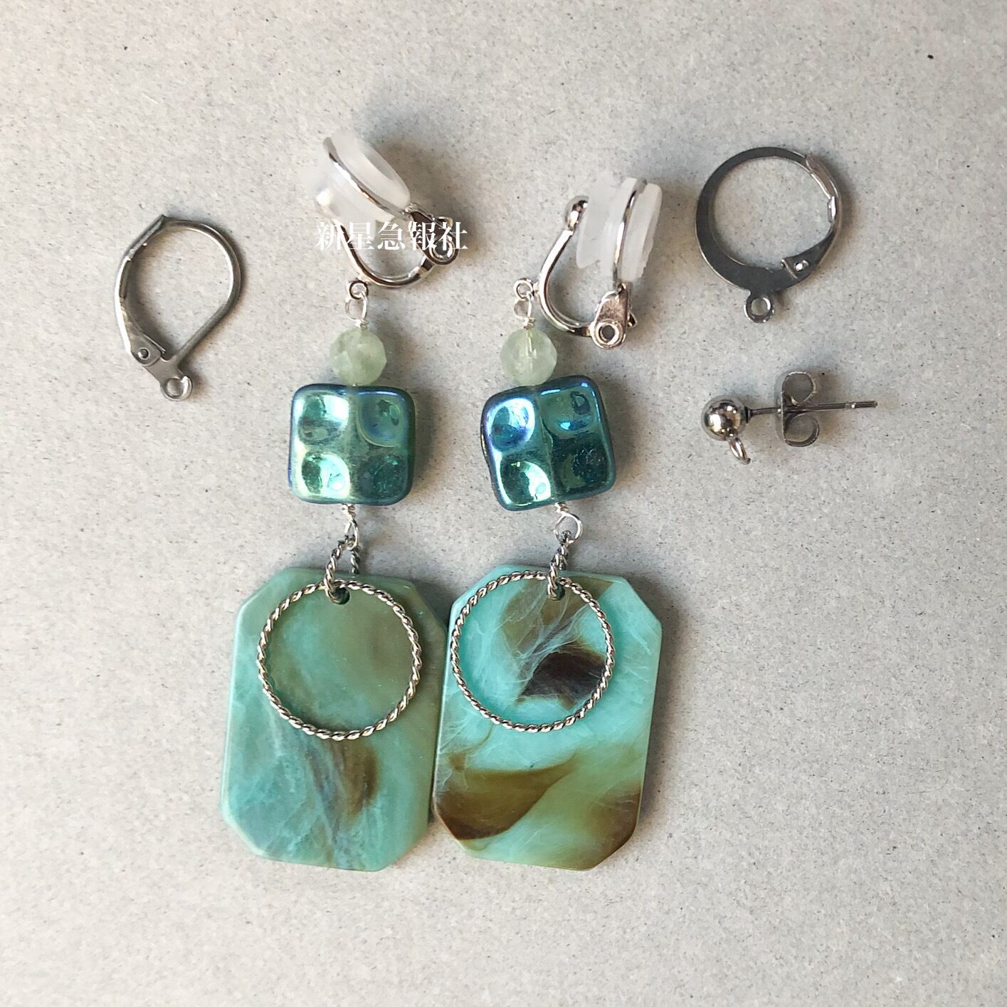 樹脂素材、ガラス(チェコビーズ)、グリーンアクアマリン