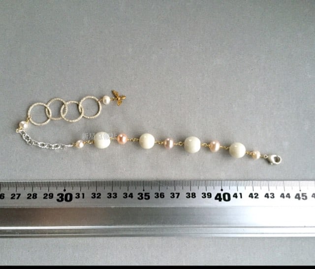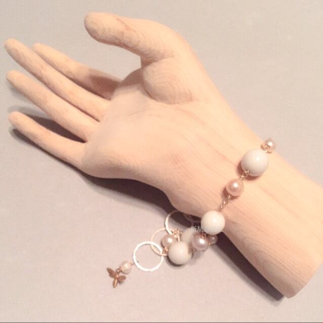 一部に樹脂ビーズ、淡水真珠、真鍮を使用しております。