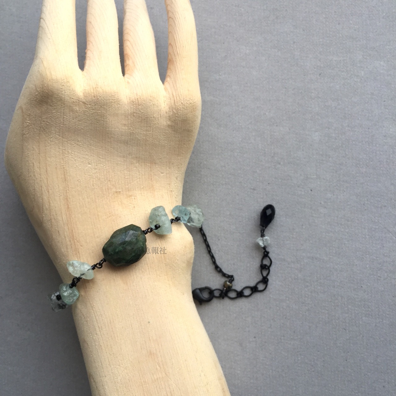 一部にエメラルド、アクアマリン、パイライト、スワロフスキーを使用しています。